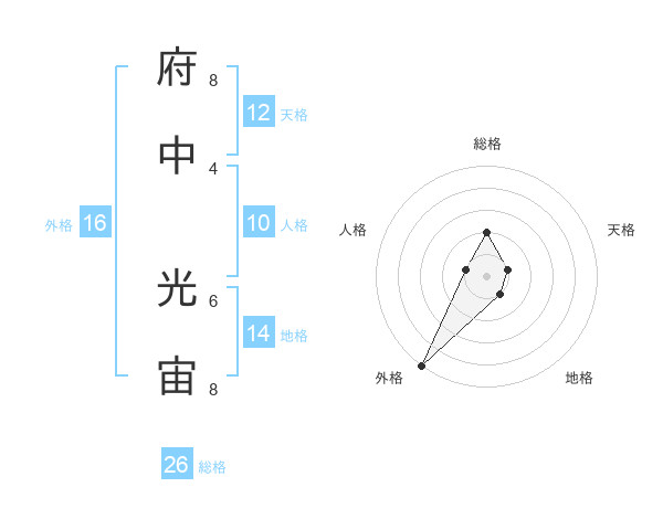 府中 光宙さんの総格は26画の2点!