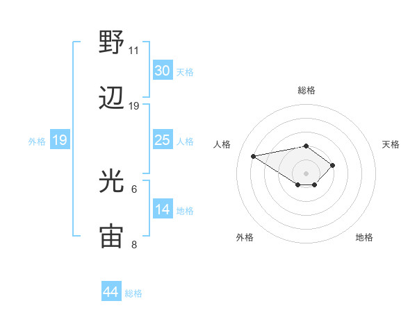 野辺 光宙さんを姓名の画数から五運を鑑定