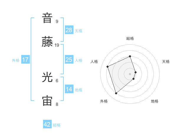 音藤 光宙さんの総格は42画の3点!