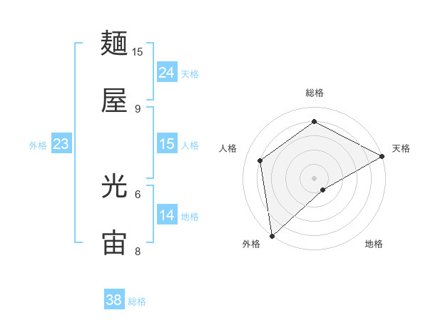 麺屋 光宙さんの総格は38画の4点!