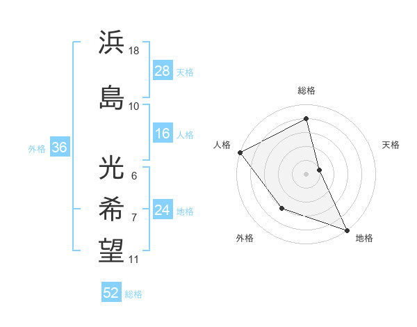 浜島 光希望さんを姓名の画数から五運を鑑定