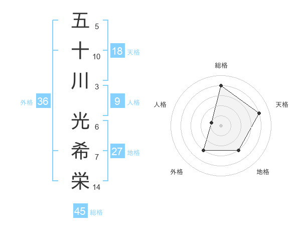 五十川 光希栄さんを姓名の画数から五運を鑑定