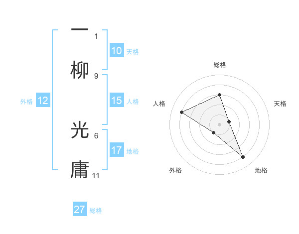 一柳 光庸さんを姓名の画数から五運を鑑定