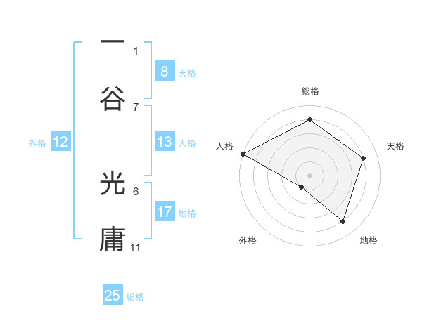 一谷 光庸さんを姓名の画数から五運を鑑定