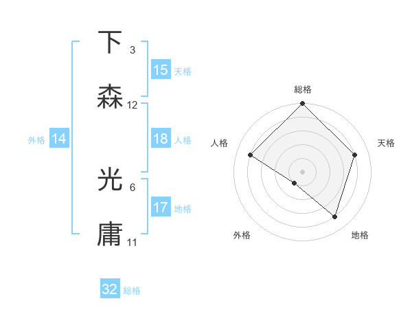下森 光庸さんの総格は32画の5点!