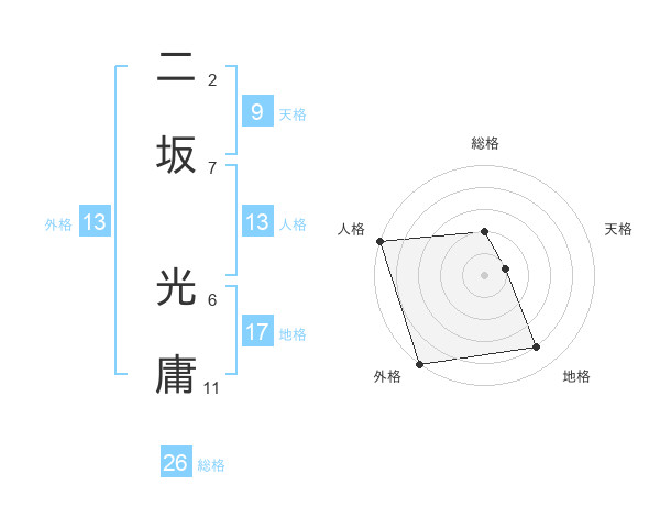 二坂 光庸さんの総格は26画の2点!
