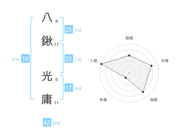 八鍬 光庸さんを姓名の画数から五運を鑑定