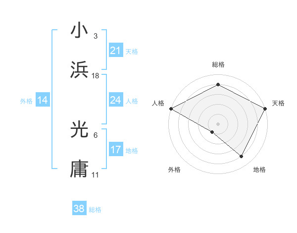 小浜 光庸さんの総格は38画の4点!