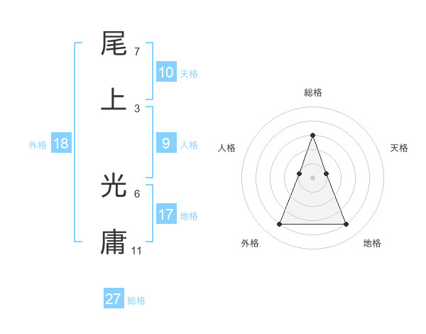 尾上 光庸さんの総格は27画の3点!