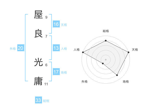 屋良 光庸さんの総格は33画の4点!