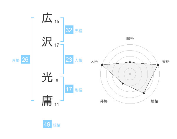 広沢 光庸さんを姓名の画数から五運を鑑定