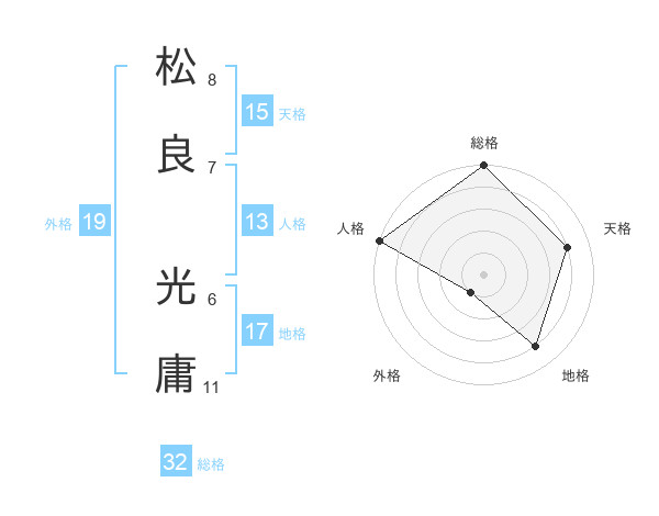 松良 光庸さんの総格は32画の5点!