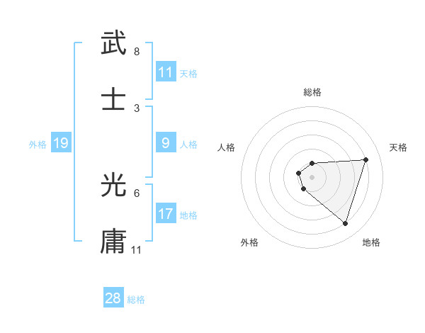 武士 光庸さんを姓名の画数から五運を鑑定