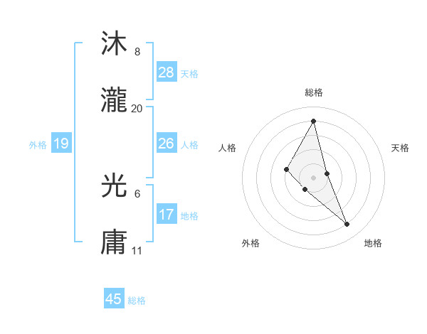 沐瀧 光庸さんを姓名の画数から五運を鑑定