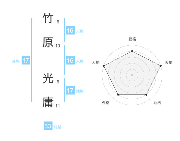 竹原 光庸さんの総格は33画の4点!