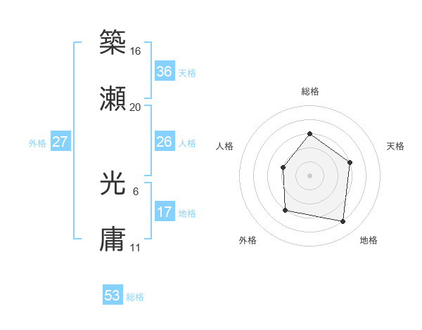 築瀬 光庸さんを姓名の画数から五運を鑑定
