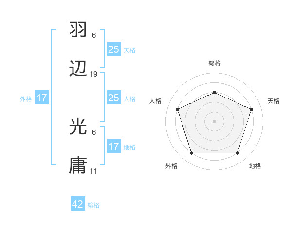 羽辺 光庸さんを姓名の画数から五運を鑑定