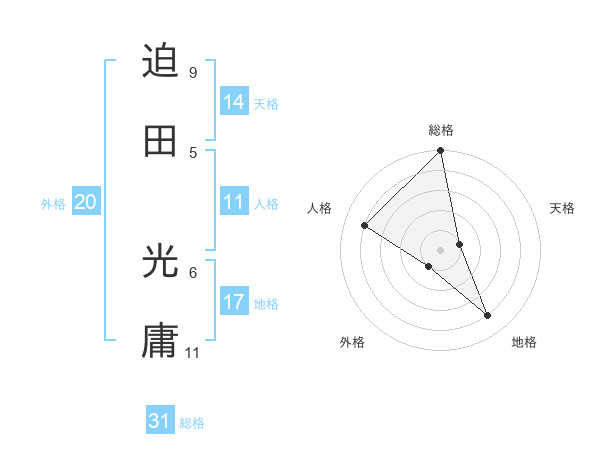 迫田 光庸さんの総格は31画の5点!