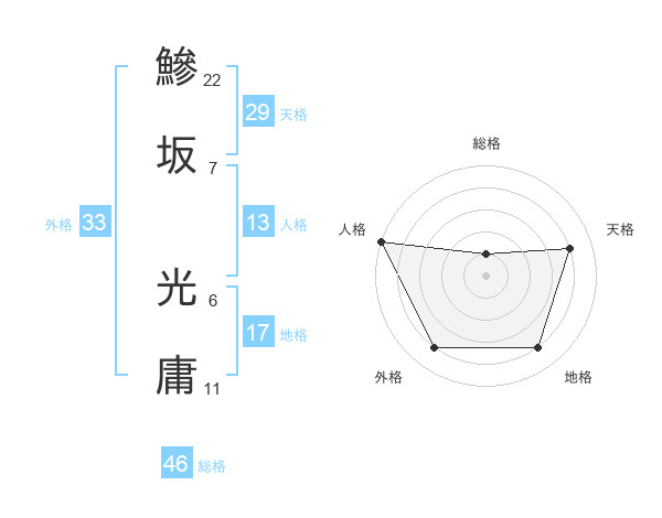鰺坂 光庸さんの総格は46画の1点!