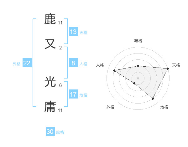 鹿又 光庸さんの外格は22画の1点!