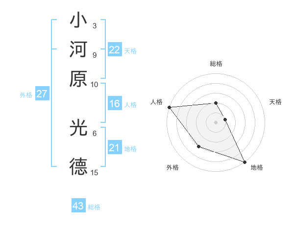 小河原 光德さんの総格は43画の2点!