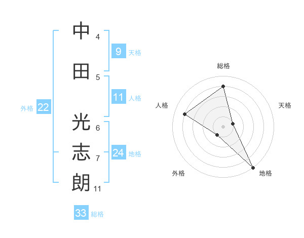 中田 光志朗さんを姓名の画数から五運を鑑定