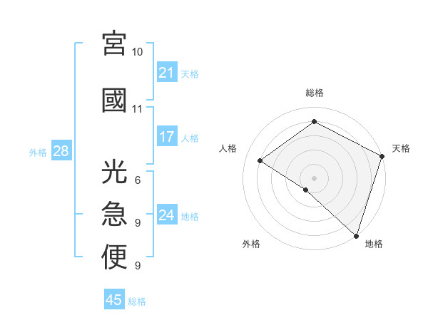宮國 光急便さんを姓名の画数から五運を鑑定