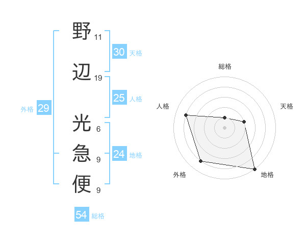 野辺 光急便さんの総格は54画の1点!