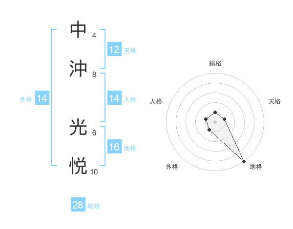 中沖 光悦さんの総格は28画の1点!