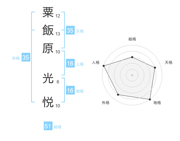 粟飯原 光悦さんを姓名の画数から五運を鑑定
