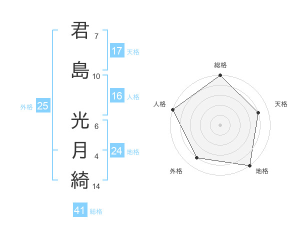 君島 光月綺さんの天格は17画の4点!
