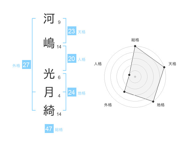 河嶋 光月綺さんを姓名の画数から五運を鑑定