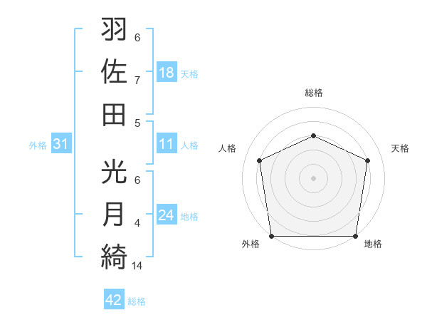 羽佐田 光月綺さんを姓名の画数から五運を鑑定