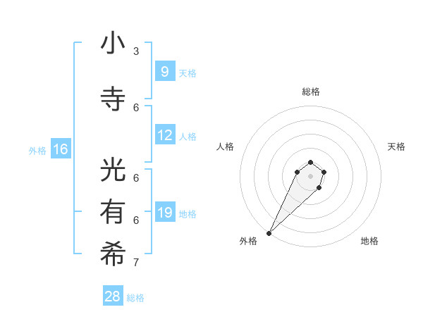 小寺 光有希さんを姓名の画数から五運を鑑定