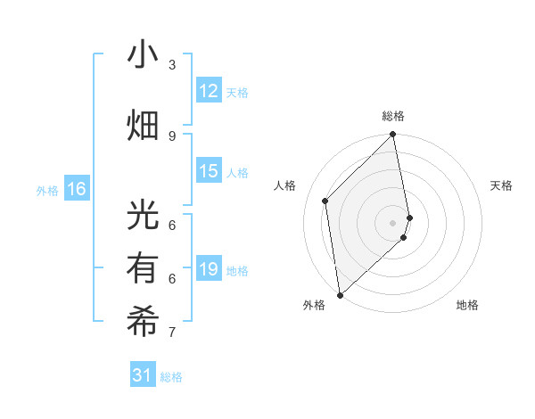 小畑 光有希さんを姓名の画数から五運を鑑定