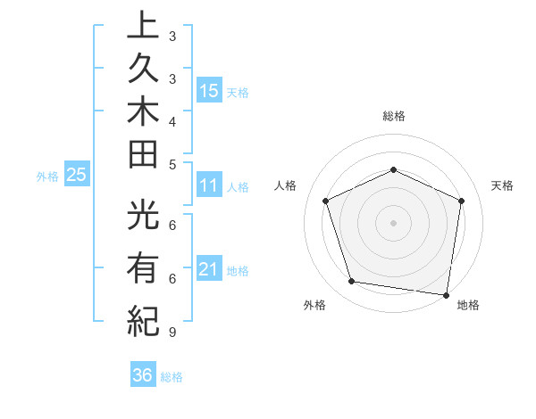 上久木田 光有紀さんを姓名の画数から五運を鑑定