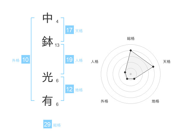 中鉢 光有さんの総格は29画の4点!