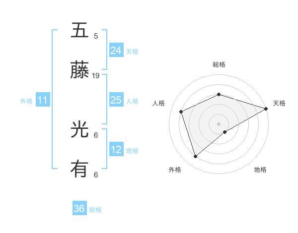 五藤 光有さんの天格は24画の5点!