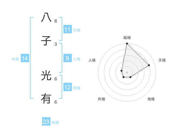 八子 光有さんの総格は23画の5点!