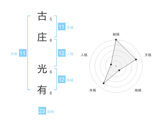 古庄 光有さんの総格は23画の5点!