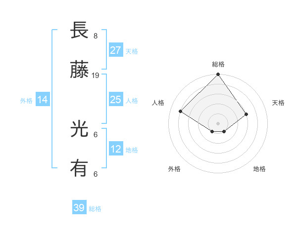 長藤 光有さんの総格は39画の5点!