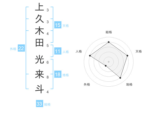 上久木田 光来斗さんを姓名の画数から五運を鑑定