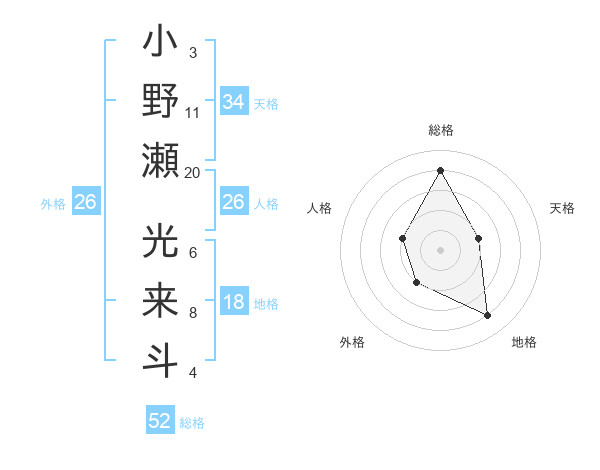 小野瀬 光来斗さんを姓名の画数から五運を鑑定