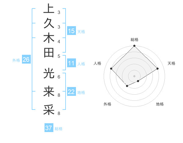 上久木田 光来采さんの総格は37画の5点!