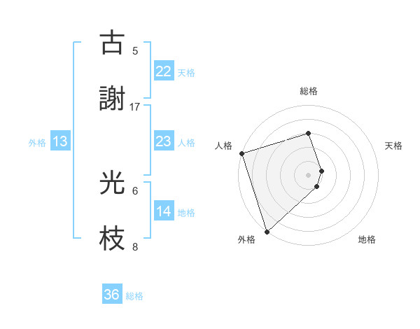 古謝 光枝さんを姓名の画数から五運を鑑定