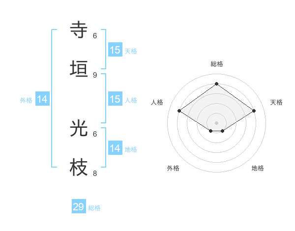 寺垣 光枝さんの総格は29画の4点!