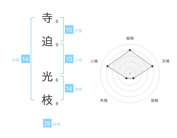寺迫 光枝さんの天格は15画の4点!