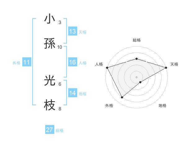 小孫 光枝さんの天格は13画の5点!