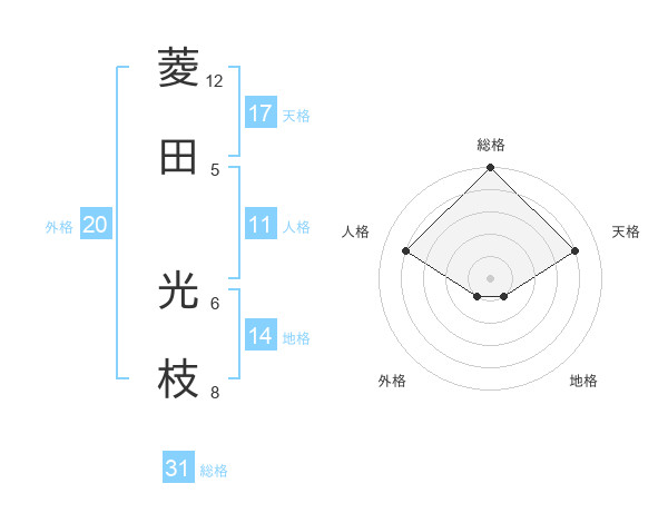 菱田 光枝さんを姓名の画数から五運を鑑定