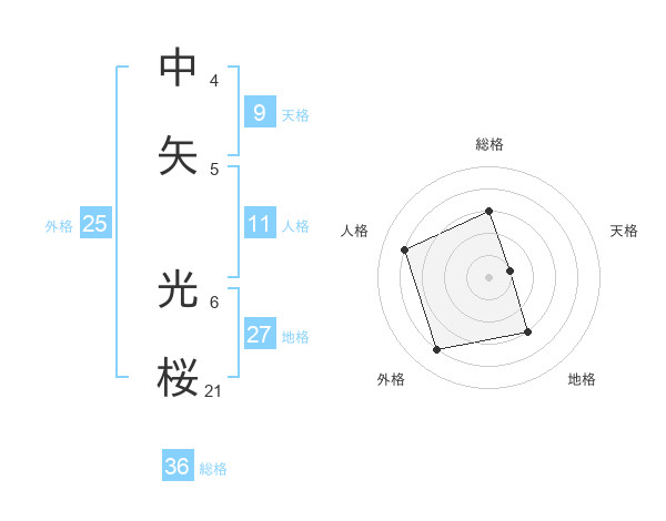 中矢 光桜さんの外格は25画の4点!